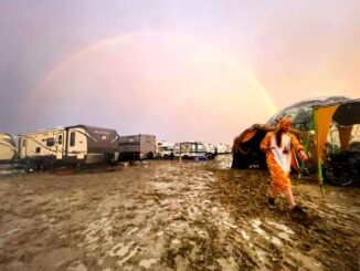 Hàng chục ngàn người dự lễ hội Burning Man ở sa mạc Nevada của Mỹ được khuyến cáo tiết kiệm thực phẩm, nước uống, nhiên liệu và ở yên tại chỗ, sau khi mưa lớn trong đêm biến sa mạc thành vũng bùn khổng lồ.