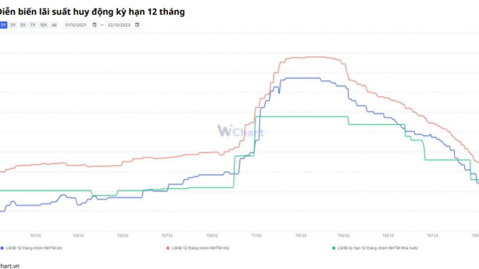 Lãi suất huy động là một trong các biến số vĩ mô có biến động lớn trong năm 2023. Trong báo cáo mới đây, Chứng khoán Mirae Asset cho biết cùng với nỗ lực hạ lãi suất điều hành của Ngân hàng Nhà nước (NHNN), hiện tượng thanh khoản dư thừa cũng đã xuất hiện trong hệ thống Ngân hàng Thương mại (NHTM) khi tín dụng tăng trưởng chậm. Các yếu tố trên đã kéo lãi suất huy động liên tục giảm, đến cuối tháng 9/2023, mặt bằng lãi suất huy động kỳ hạn 12 tháng đã về mức dưới 6%/năm.