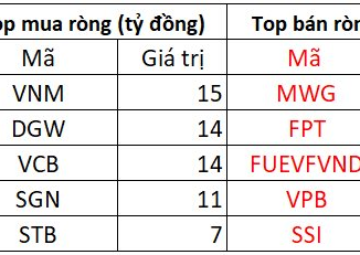 Trên HOSE, khối ngoại bán ròng với giá trị xấp xỉ 827 tỷ đồng, cổ phiếu MWG chịu áp lực bán mạnh nhất với giá trị lên tới 141 tỷ đồng; theo sau FPT cũng bị bán ròng 94 tỷ đồng.