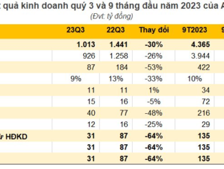 Lũy kế 9 tháng đầu năm, doanh thu thuần ghi nhận 4.365 tỷ đồng và lãi sau thuế gần 135 tỷ đồng, lần lượt giảm 11% và 46% so với cùng kỳ năm 2022.