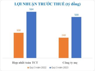 Lũy kế 9 tháng đầu năm 2023, doanh thu hợp nhất đạt 10.173 tỷ; lợi nhuận trước thuế đạt 1.588 tỷ đồng.