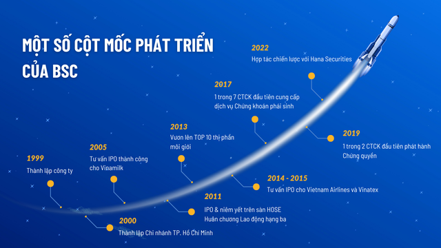 BSC là cái tên quen thuộc với Nhà đầu tư chứng khoán ngay từ thế hệ đầu tiên, khi được thành lập từ năm 1999 và là 1 trong 2 CTCK đầu tiên của TTCK Việt Nam.