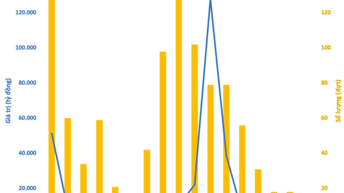 Thực tế, hoạt động đấu giá cổ phần đã rơi vào “downtrend” kể từ sau giai đoạn bùng nổ 2015-18. Những năm gần đây, số lượng các đợt đấu giá trên sàn chứng khoán ngày càng ít, “bom tấn” gần như không có. Giá trị cổ phần bán được thông qua đấu giá cũng liên tục giảm mạnh sau khi đạt đỉnh gần 130.000 tỷ vào năm 2017.