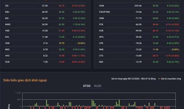 Giao dịch khối ngoại tính đến chiều 8/12, tiếp tục xu hướng bán ròng.