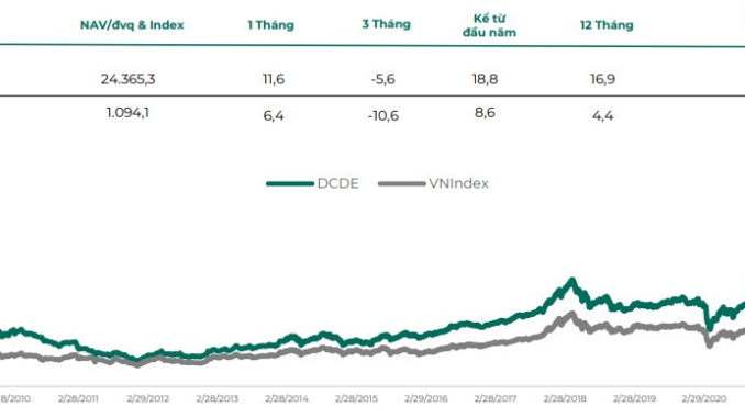 DCDE cho biết, điểm nhấn trong chiến lược đầu tư mới là ưu tiên lựa chọn các công ty có lịch sử chi trả cổ tức thuộc các ngành tăng trưởng ổn định, trọng yếu của nền kinh tế. Sự tăng trưởng nổi bật của quỹ trong tháng 11 còn được hỗ trợ bởi những thông tin tích cực từ thị trường, bao gồm tổng kim ngạch xuất nhập khẩu hàng hóa của cả nước trong 11 tháng đầu năm, ước đạt hơn 619 tỷ USD, và nguồn vốn FDI đăng ký vào Việt Nam đạt 22,9 tỷ USD, tăng 8,7% so với cùng kỳ năm trước.