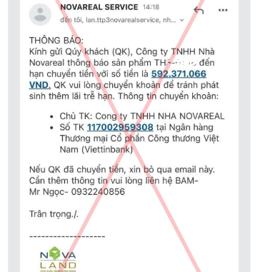 Văn bản của Novaland nêu, thời gian qua, nhiều đơn vị, đối tượng đã lợi dụng uy tín và thông tin dự án của Novaland để mạo danh thương hiệu và nhân viên công ty cùng các đối tác tư vấn, môi giới chiến lược của các chủ đầu tư dự án bất động sản do Novaland phát triển. Chi tiết hơn, các đối lượng đã mạo danh Trung tâm chăm sóc khách hàng của Novaland và đối tác để nhắn tin, gửi email nhắc hạn thanh toán sản phẩm bất động sản.