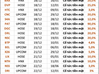 Tỷ lệ doanh nghiệp trả cổ tức tiền mặt tuần này khá cao khi có đến 8 doanh nghiệp trả cổ tức trên 20%, mức cao nhất là 90% và thấp nhất là 3%.