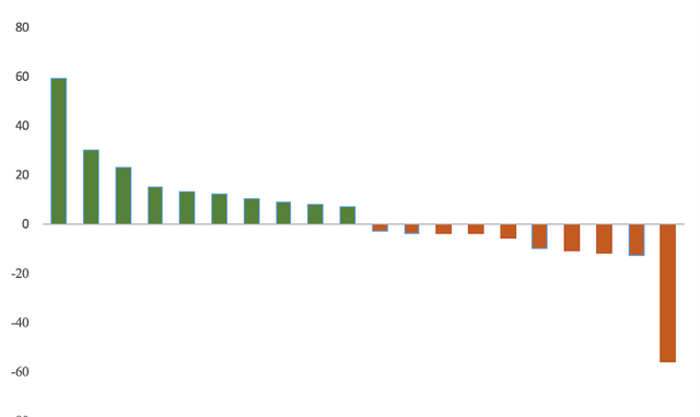 Ngược lại, nhóm CTCK bán ròng mạnh nhất tại cổ phiếu KOS với giá trị khoảng 56 tỷ đồng. Đồng thời, HSG, PNJ, MWG, GMD cũng bị bán ròng từ 10 đến 13 tỷ đồng mỗi cổ phiếu.