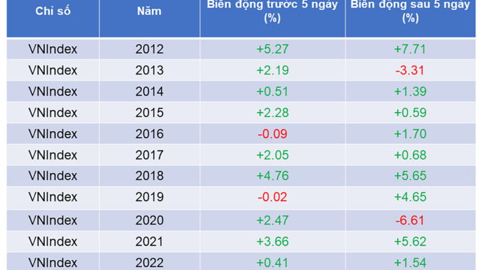 Theo một số chuyên gia, thị trường trước Tết có diễn biến giao dịch cẩn trọng nhưng các năm gần đây, thị trường chứng khoán sau kỳ nghỉ Tết nguyên đán đều tăng khá tích cực. Theo thống kê, trong 10 năm gần nhất thị trường chứng khoán Việt Nam có tới 8 lần tăng điểm trước và sau Tết trong khi chỉ có 2 năm ghi nhận mức giảm. Nhà đầu tư có thể nắm bắt cơ hội hiện tại để gia tăng vị thế, tận dụng thị giá cổ phiếu tốt đang ở mức rẻ với P/E chỉ gần 14 lần. Các cổ phiếu ngành Ngân hàng đa số đang ở vùng định giá khá thấp với P/E 6-7 lần và P/B quanh mức 1.