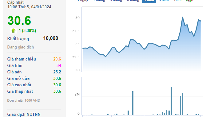 Trên thị trường chứng khoán, cổ phiếu GEE kết phiên 3/1 đạt 29.500 đồng/cp, tăng 18% so với đầu năm 2023.