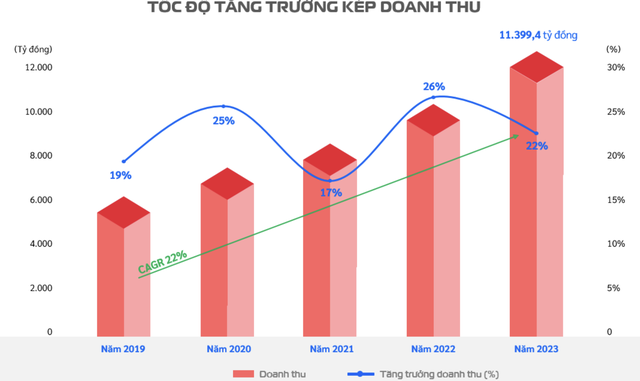 Kết quả trên giúp Viettel Construction nối dài chuỗi tăng trưởng cả về doanh thu và lợi nhuận qua từng năm. Tính chung trong giai đoạn 2019-23, doanh nghiệp đạt tốc độ tăng trưởng kép 22% về doanh thu và 33,5% về lợi nhuận.