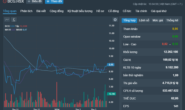 Cổ phiếu BCG đang có giá 8.840 đồng/cổ phiếu
