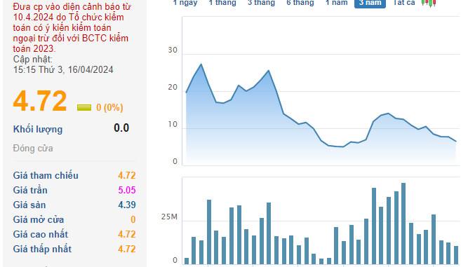 Với lý do này, cổ phiếu PSH rơi vào diện cảnh báo hiệu lực từ 10/4 và bị HOSE cắt margin.
