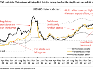Maybank IBG Research cho rằng NHNN có thể sẽ chấp nhận biến động tỷ giá ngoại hối lớn hơn và sẽ giữ nguyên lãi suất trong khi chờ đợi đợt cắt giảm lãi suất đầu tiên của Fed, có thể vào tháng 6/2024.
