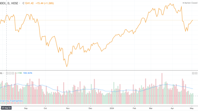 Do đó, những nhịp rung lắc hoặc đảo chiều có thể xuất hiện, nhưng sẽ không tạo ra đáy mới thấp hơn mức 1.166 đã tạo ra trước đó. Kỳ vọng từ trung tuần tháng 5 trở đi thị trường sẽ tích cực trở lại.