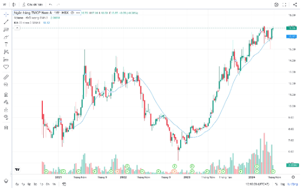 Diễn biến giá cổ phiếu NAB trong thời gian qua.