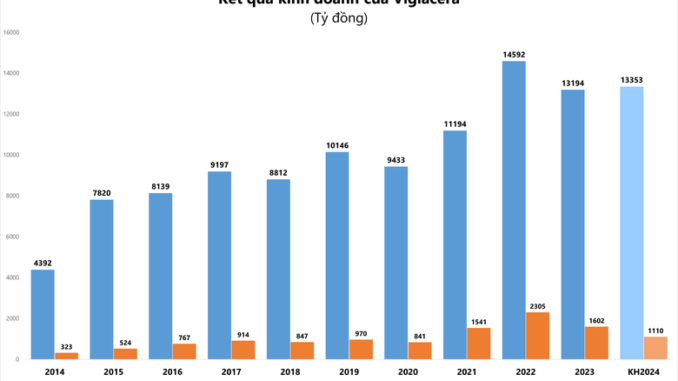 Tại đại hội, ban lãnh đạo Viglacera dự kiến sẽ trình cổ đông thông qua kế hoạch sản xuất kinh doanh năm 2024 với tổng doanh thu thuần 13.353 tỷ đồng và lợi nhuận trước thuế hợp nhất 1.110 tỷ đồng, giảm lần lượt 15% và 8% so với năm 2023.