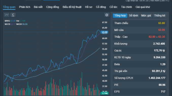 Động thái bán cổ phiếu của Chủ tịch Thế giới Di động diễn ra trong bối cảnh giá cổ phiếu MWG tăng tới hơn 47% tính từ đầu năm. Với giá đóng cửa của MWG ngày 4-6, ước tính lô cổ phiếu trên có giá trị gần 130 tỉ đồng.
