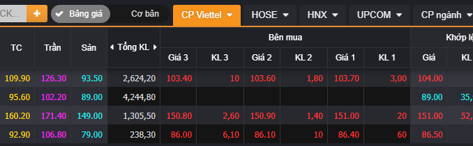 Cùng nhóm còn có hai đại diện sàn UPCoM là VTK của Tư vấn và dịch vụ Viettel giảm gần 7% xuống 86.500 đồng/cp. Tương tự, VGI của Viettel Global giảm 5,4% xuống 104.000 đồng/cp, điều này khiến doanh nghiệp tỷ USD duy nhất trong họ Viettel mất gần 18.000 tỷ đồng vốn hóa, sụt xuống còn hơn 315.600 tỷ đồng.