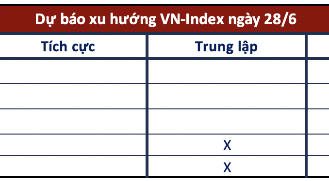 Lực cầu suy yếu không đủ sức giúp thị trường giữ được sắc xanh, VN-Index tiếp tục diễn biến giằng co quang ngưỡng tham chiếu. Chỉ số đóng cửa phiên 27/6 giảm 2,15 điểm tại 1.259 điểm. Dòng tiền sụt giảm mạnh với thanh khoản trên HOSE chỉ đạt trên 15.000 tỷ đồng.