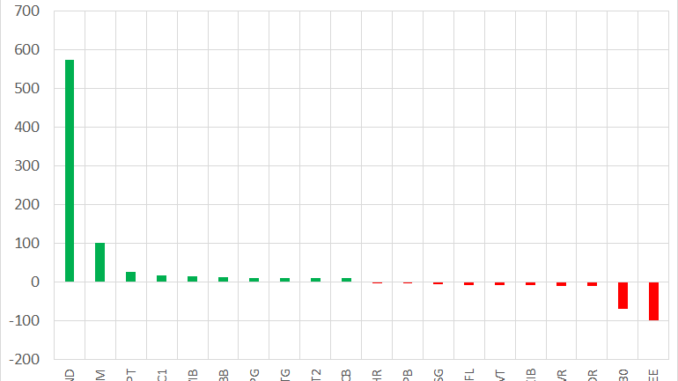 Ngược lại, nhóm CTCK bán ròng mạnh nhất tại E1VFVN30 với 69 tỷ. Hai mã PDR và GVR bị bán ròng với giá trị lần lượt là 10 tỷ và 9 tỷ. Theo sau là EIB cũng bị bán ròng khoảng 7 tỷ đồng. Các cổ phiếu bị bán ròng trong phiên hôm nay còn có loạt mã PVT, FUESSVFL, HSG, LPB…
