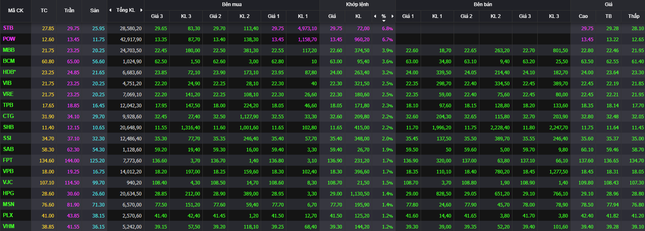 Những cổ phiếu vốn hóa, thanh khoản hàng đầu đều có diễn biến tích cực. FPT thanh khoản trên 1.000 tỷ đồng. Các mã trong top thanh khoản cao như STB, POW, DPM tăng hết biên độ.