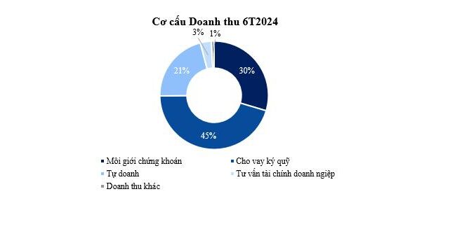Doanh thu từ hoạt động tự doanh đạt 334 tỷ đồng, tăng 20% so với cùng kỳ năm 2023. Riêng trong quý 2.2024, doanh thu hoạt động này đạt hơn 170 tỷ đồng và là mức cao nhất trong 5 quý liền kề gần đây.