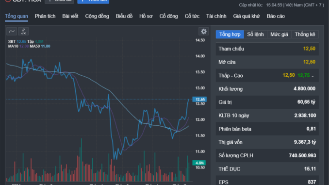 Động thái bán ra của bà Đặng Huỳnh Ức My diễn ra trong bối cảnh cổ phiếu SBT đang dần hồi phục trở lại sau pha lao dốc hồi giữa tháng 4-2024, xuống mức thấp nhất kể từ đầu năm.