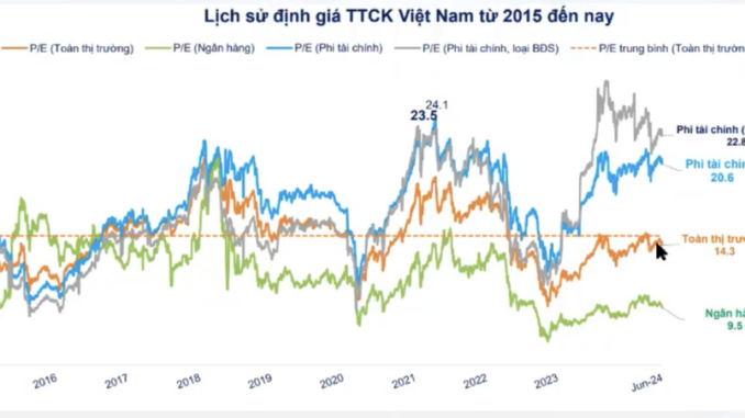 Tuy nhiên, nếu loại bỏ P/E nhóm bất động sản, định giá nhóm phi tài chính đang ở mức 22,8 lần, tương đương vùng đỉnh định giá thời điểm năm 2021 khi thị trường vào pha uptrend mạnh.