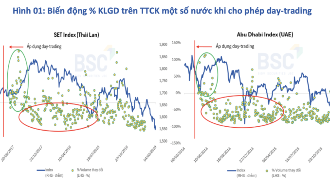 Tương tự, thị trường chứng khoán Thái Lan và UAE ghi nhận thanh khoản cải thiện tích cực kể từ khi áp dụng hoạt động day-trading tuy nhiên sau đó thanh khoản toàn thị trường có xu hướng suy giảm khi giai đoạn thị trường chứng khoán hai nước này đều bước vào xu hướng giảm.