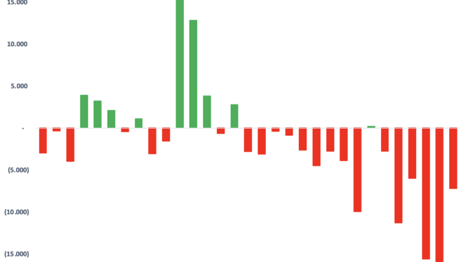 Từ đầu năm 2024 đến nay, khối ngoại đã bán ròng hơn 59.000 tỷ đồng trên HoSE, đặc biệt với lực bán gia tăng mạnh trong quý 2 vừa qua. Hai tháng liên tiếp 5-6 giá trị bán ròng vượt 15.000 tỷ đồng, mức cao kỷ lục trong một tháng. Khối ngoại xả hàng trên thị trường chứng khoán Việt Nam nằm trong xu hướng rút vốn đang diễn ra trên các thị trường cận biên và mới nổi.