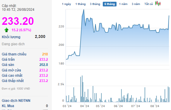 Biến động mạnh về thị giá nhưng thanh khoản cổ phiếu VCF không cải thiện nhiều. Khối lượng khớp lệnh trung bình 10 phiên gần nhất chưa đến 1.000 đơn vị, riêng trong phiên sáng 26/8 ghi nhận khối lượng sang tay 2.300 cổ phiếu.