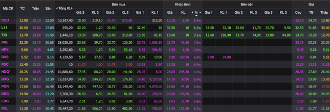 Loạt cổ phiếu bất động sản tăng trần.
