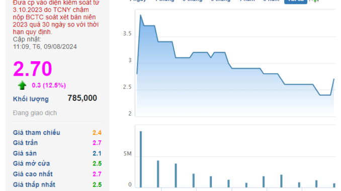 Phiên giao dịch 9/8 chứng kiến đà tăng bốc của nhóm cổ phiếu ngành thép, nổi bật nhất là mã POM của CTCP Thép Pomina (mã POM). Thị giá tăng hết biên độ 12,5% lên mức 2.700 đồng/cp, dư mua tại mức giá trần gần 800 nghìn đơn vị.