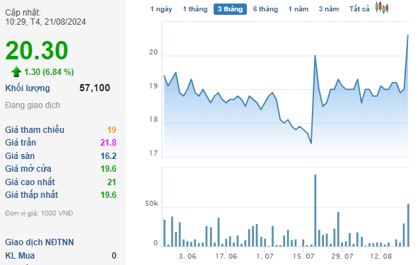 Trong khi nhóm cổ phiếu bất động sản đồng loạt điều chỉnh sau phiên tăng bốc, cổ phiếu TAL của CTCP Đầu tư Bất động sản Taseco (mã TAL) bất ngờ tăng tốc ngoạn mục. Ghi nhận trong phiên sáng 21/8, cổ phiếu này phi một mạch 6,84% lên 20.300 đồng/cp – mức cao nhất trong hơn 3 tháng qua. Vốn hóa thị trường theo đó cũng tăng mạnh lên hơn 6.000 tỷ đồng.