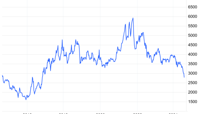 Sau một nhịp hồi nhẹ trong quý 2 vừa qua, giá thép thanh tương lai đã lao dốc mạnh và lần đầu xuống dưới 2.800 CNY/tấn, thấp nhất trong vòng 8 năm, kể từ năm 2016. Tương tự, giá thép cuộn cán nóng (HRC) tương lai cũng rơi về mức thấp nhất trong gần 4 năm, kể từ trung tuần tháng 10/2020.