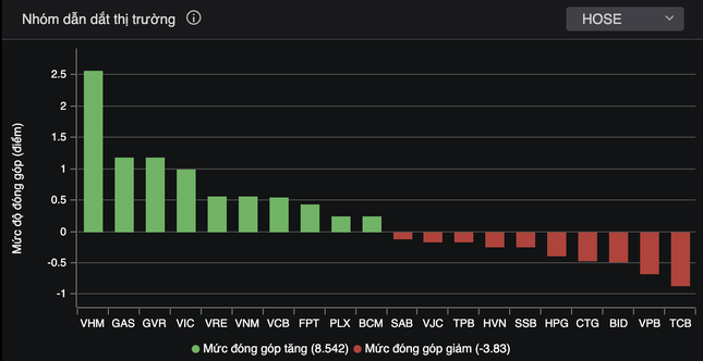 Bộ 3 VHM, VIC, VRE đóng góp 3,2 điểm cho chỉ số chính