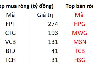 Nhóm NĐT nước ngoài trở lại bán ròng hơn 323 tỷ đồng trên toàn thị trường, tập trung cổ phiếu HPG, MWG.
