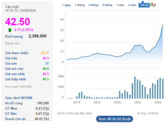 Đóng cửa phiên 14/8, cổ phiếu CNN dừng ở mức giá 41.200 đồng/cp, tương ứng mức tăng 17% chỉ sau 2 phiên giao dịch.