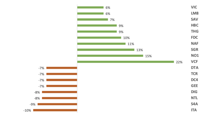 Trên HOSE, cổ phiếu VCF dẫn đầu danh sách cổ phiếu tăng mạnh nhất với chuỗi tăng mạnh 4 phiên, trong đó có 3 phiên kịch trần. Hiện, VCF đang giao dịch ở mức 267.000 đồng/cp, tương ứng mức tăng 22% chỉ sau 1 tuần. Đà tăng của VCF cũng củng cố thêm vị trí cổ phiếu có thị giá đắt đỏ nhất trên sàn HOSE, bỏ xa cổ phiếu xếp sau là FRT. Vốn hóa thị trường cũng cải thiện đáng kể lên mức sát 7.000 tỷ đồng.