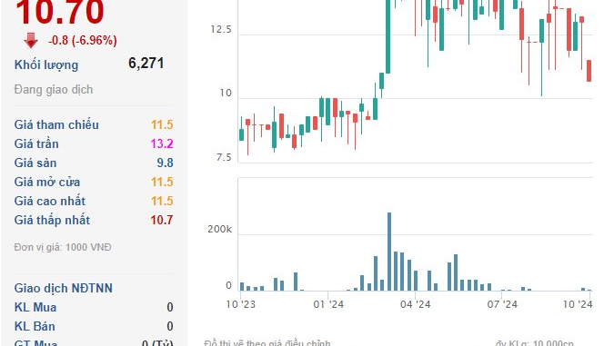 Tại phiên 25/9, cổ phiếu HAC ghi nhận khối lượng giao dịch thỏa thuận đúng bằng số lượng cổ phiếu 2 cá nhân trên mua vào là 11,7 triệu đơn vị, tổng giá trị thỏa thuận đạt hơn 131 tỷ đồng. Hiện tại, thị giá HAC đang giảm mạnh gần 7% so với phiên trước về mức 10.700 đồng/cp.