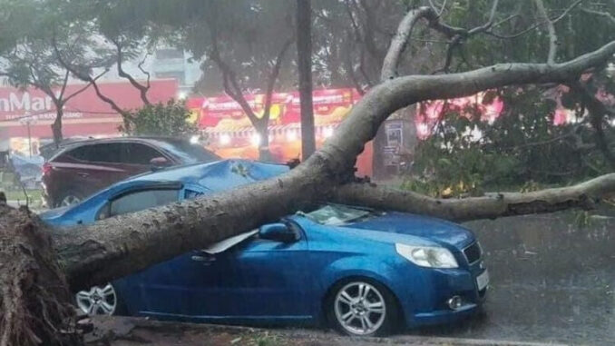 Bão số 3 gây ảnh hưởng đến nhiều tỉnh, thành phố phía Bắc, khiến nhiều cây xanh gãy đổ, thậm chí, bật gốc đè lên ô tô, xe gắn máy của người dân.