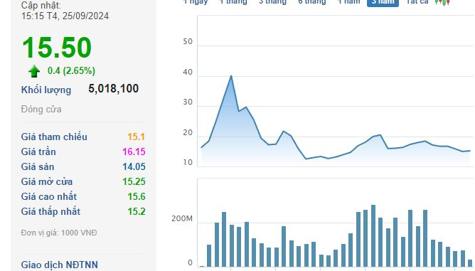 Trên thị trường, cổ phiếu CII chốt phiên 25/9 đạt 15.500 đồng/cp.