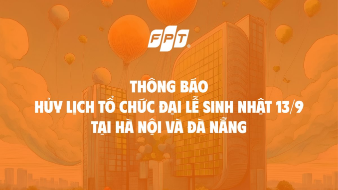 Sự kiện hội thao, hội diễn mừng sinh nhật Tập đoàn FPT 36 tuổi tại Hà Nội và Đà Nẵng vào ngày 13/9 tới đây sẽ không diễn ra , trang tin nội bộ FPT cho biết.