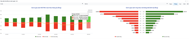 Tháng 8, khối ngoại giảm cường độ bán ròng. Dữ liệu: Vietstock.