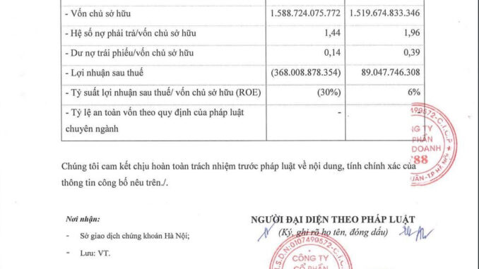 Với kết quả kinh doanh trên, tỷ suất lợi nhuận sau thuế/vốn chủ sở hữu (ROE) của doanh nghiệp này đẫ tăng từ âm 30% lên mức 6%.