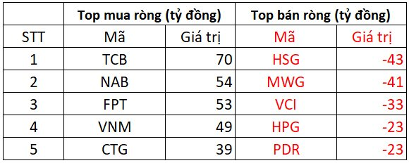 Tại chiều mua, cổ phiếu TCB được khối ngoại mua mạnh nhất toàn thị trường với giá trị 70 tỷ đồng. Theo sau, NAB và FPT là 2 mã tiếp theo được gom trên 50 tỷ đồng. Ngoài ra, VNM, CTG cũng được mua từ 39 đến 49 tỷ đồng.