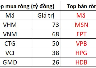 Tại chiều mua, VHM được mua mạnh nhất với gần 73 tỷ đồng. Theo sau, VNM cũng được “gom” ròng 68 tỷ đồng.