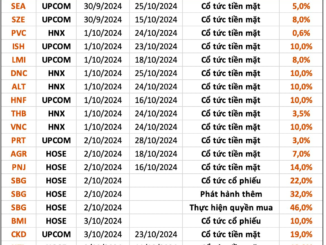 Trong tuần này có 17 doanh nghiệp trả cổ tức bằng tiền mặt, mức cao nhất là 19% và thấp nhất là 0,6%.