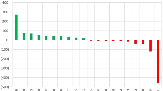 Ngược lại, nhóm CTCK bán ròng mạnh nhất tại BWE với giá trị đột biến 462 tỷ, chủ yếu là bán thỏa thuận. Theo sau, EVF và MBB cũng bị bán ròng với giá trị lần lượt là 122 tỷ và 40 tỷ. Các cổ phiếu bị bán ròng trong phiên hôm nay còn có VCI, VNM, TCH…